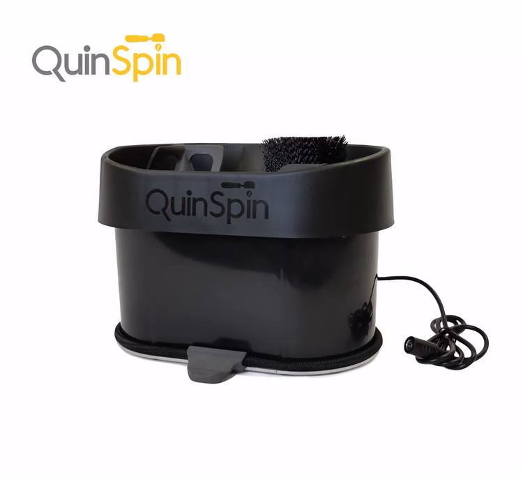 Der QuinSpin V2.0 ist ein Einbau-Reinigungsgerät, das entwickelt wurde, um gebrauchten Kaffeesatz aus dem Siebträger und dem Filtersieb zu entfernen. Dieses 2-stufige Gerät kann gleichzeitig verwendet werden, wenn mehr als ein Siebträger gereinigt wird. Eine Seite entfernt den Kaffeesatz, während die andere das Sieb sauber poliert.