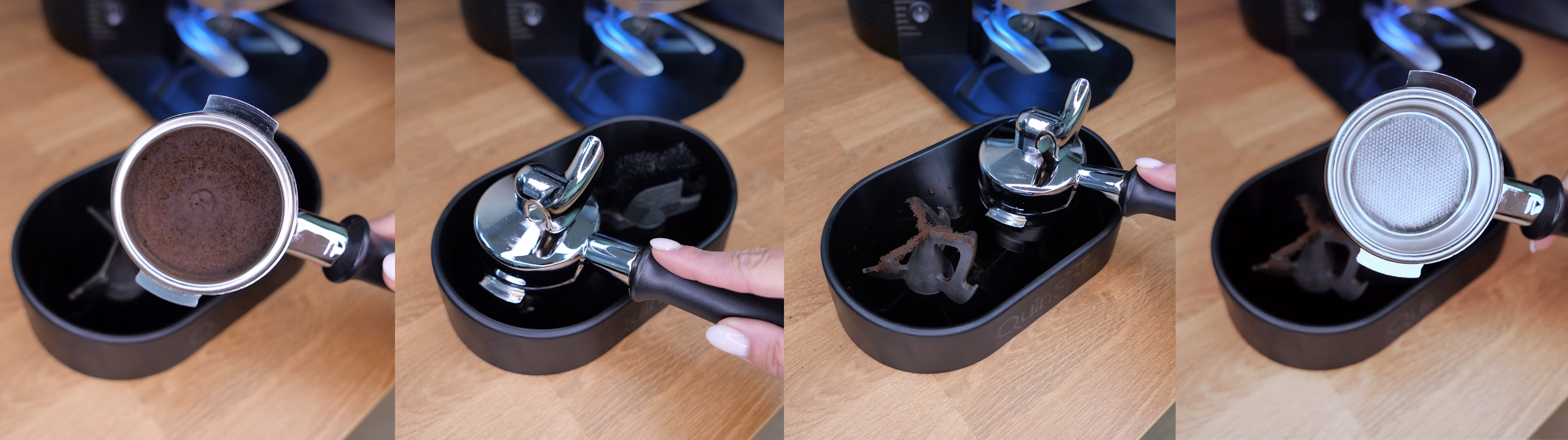 Die leise, schnelle und saubere Lösung für die Siebträgerreinigung.